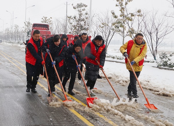近日,受強冷空氣影響,霍邱縣迎來(lái)了連續雨雪天氣,縣城道路出現積雪、結冰現象,給人民群眾出行帶來(lái)了安全隱患。2月4日,霍邱項目黨支部積極響應屬地新店鎮黨委號召,組織黨員志愿者開(kāi)展了“掃雪除冰暖人心 白雪更映志愿紅”黨員志愿服務(wù)活動(dòng),采取以機械作業(yè)為主,人工清雪為輔的方式,開(kāi)展掃雪除冰、疏通道路等工作,全力保障人民群眾安全出行,以實(shí)際行動(dòng)彰顯國企擔當。