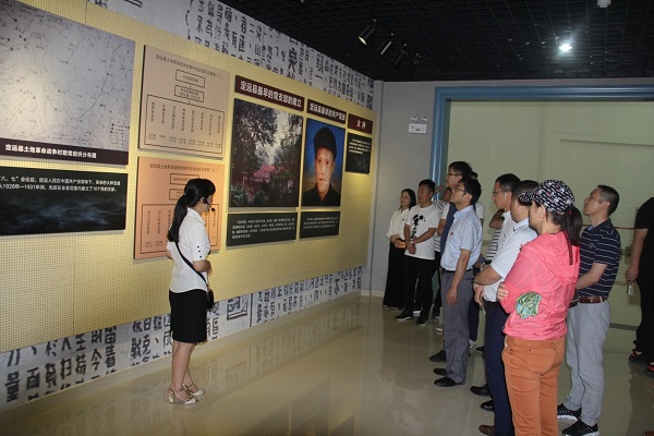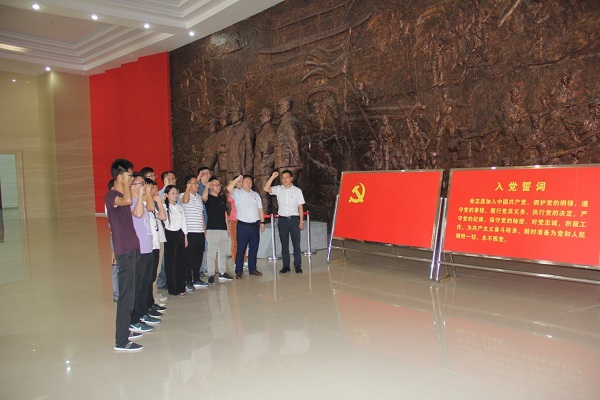 藕塘為抗日戰爭時(shí)期津浦路西革命根據地中心,素有“小莫斯科”之譽(yù)稱(chēng),是我省首批愛(ài)國主義教育基地。在莊嚴肅穆的烈士陵園,全體人員首先在講解員的帶領(lǐng)下依次參觀(guān)了藕塘紀念館的各個(gè)展區,觀(guān)看珍貴的文物、文獻、照片等資料,回顧黨的光輝歷程,追尋英雄足跡,緬懷先烈事跡,再次被劉少奇、葉挺、羅炳輝等老一輩無(wú)產(chǎn)階級革命家的壯烈事跡所感動(dòng)。隨后來(lái)到紀念館大廳前,全體黨員面對鮮紅的黨旗,重溫入黨誓詞,進(jìn)一步牢固“不忘初心、牢記使命”的政治信念。